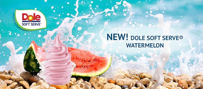 Vi er glade for at annoncere frigivelsen af en NY vaskeægte spændende frugtsmag, DOLE SOFT SERVE® vandmelon! En forfriskende smag med et let strejf af sødme!