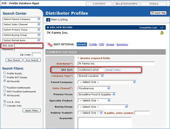 Distributor Profile edit page (M45) and Distributor Directory (M86). On form submission, GLN numbers are