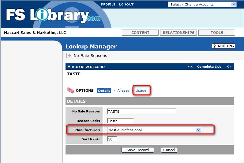 possible to associate a No Sale Reason with a specific Mfr. Once this is done, any Mfr specific Opportunity