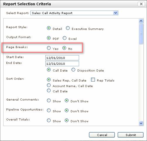 Sales Call Activity report now has