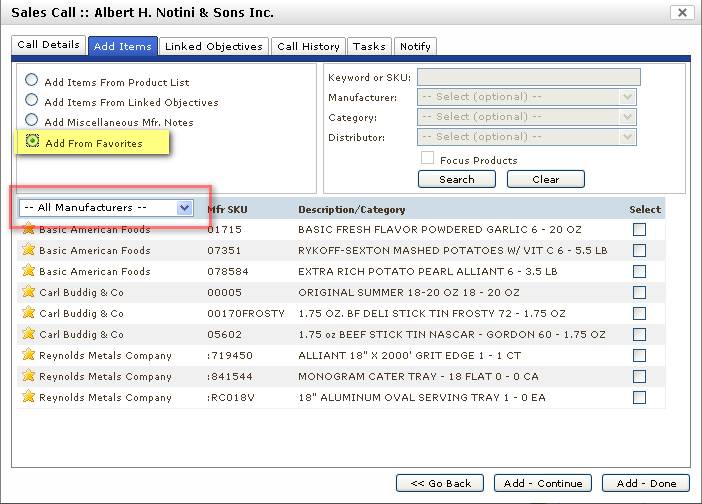 to a call, can now be filtered by manufacturer:
