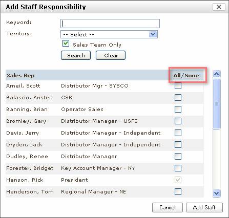 When adding staff to an objective,
