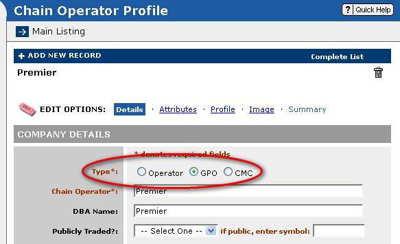 be required as all GPOs and CMCs are not in the Chain Operator database