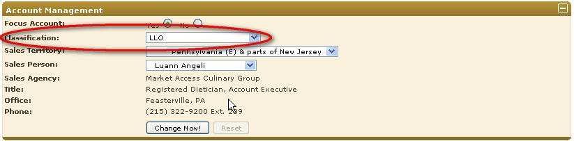 change Classification and Focus Account status, the "Operator Profile