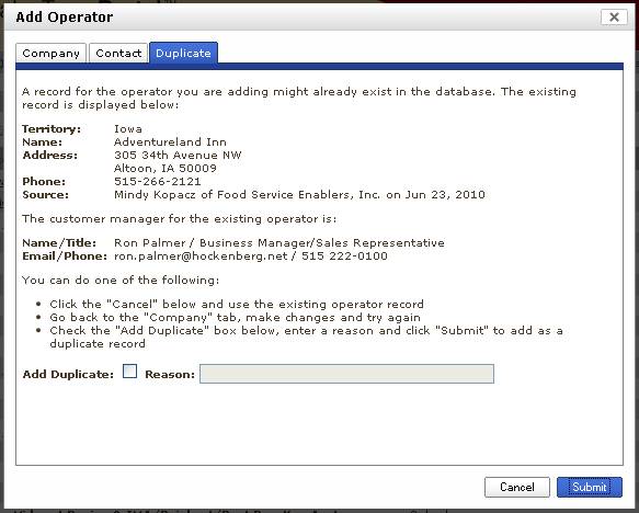 company information and try again, or force it in anyway. If they force it in (by checking Add
